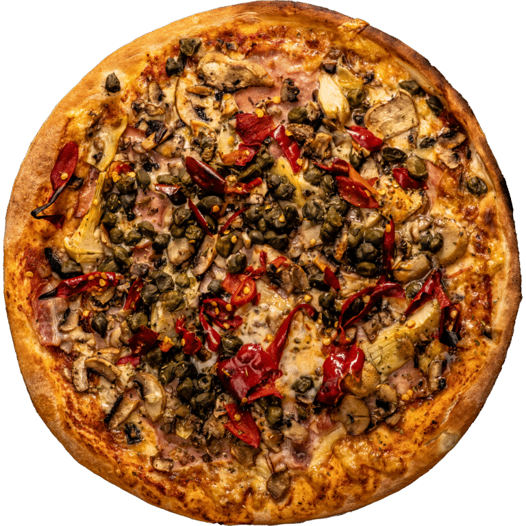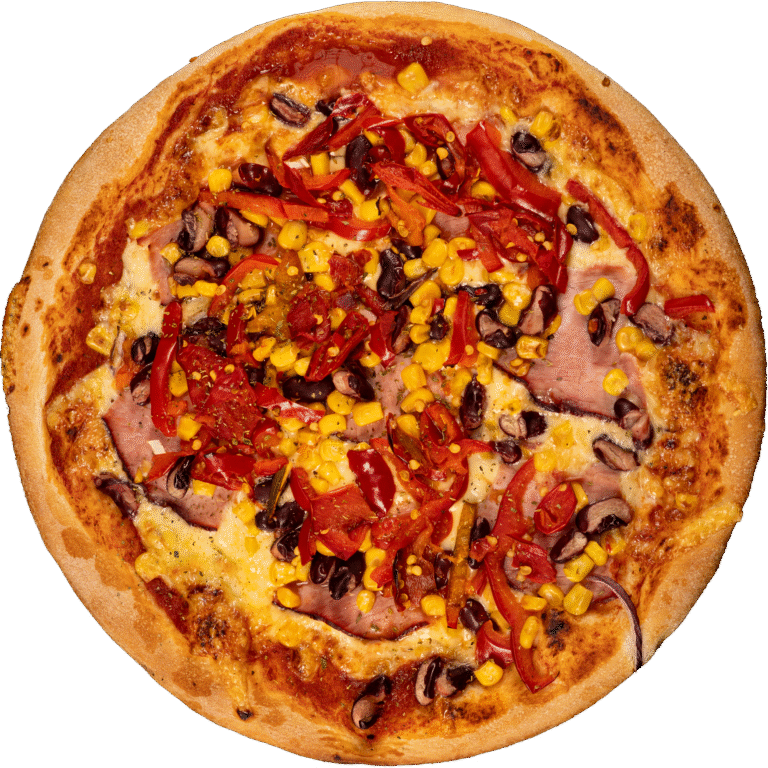 cesto, par. omáčka, syr, brav. mäso, kápia, cibuľa, cesnak, kukurica, feferóny, oregáno