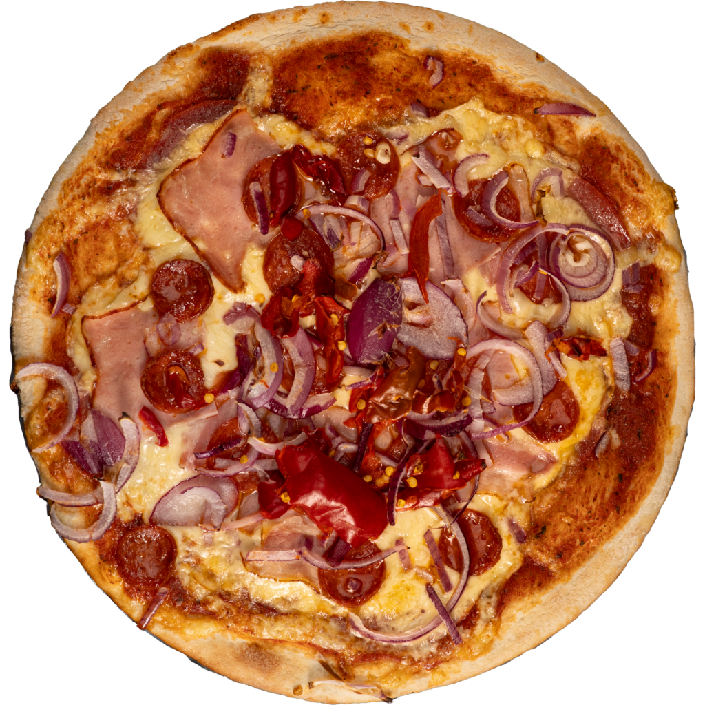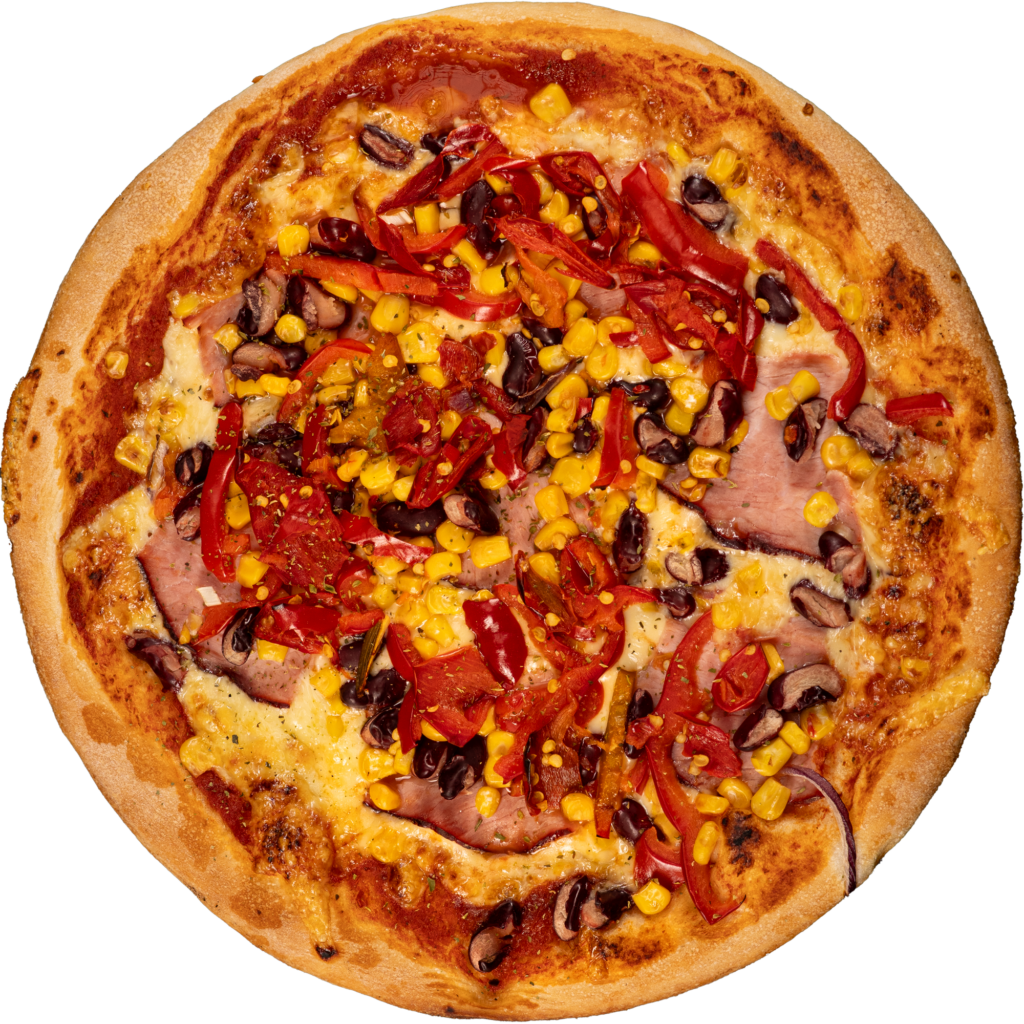 cesto, par. omáčka, syr, brav. mäso, kápia, cibuľa, cesnak, kukurica, feferóny, oregáno